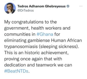 I can’t help asking myself if the galamsey (illegal mining activities) with pollution of rivers contributed to the elimination of trypanosomiasis (sleeping sickness) rather than public health interventions.
