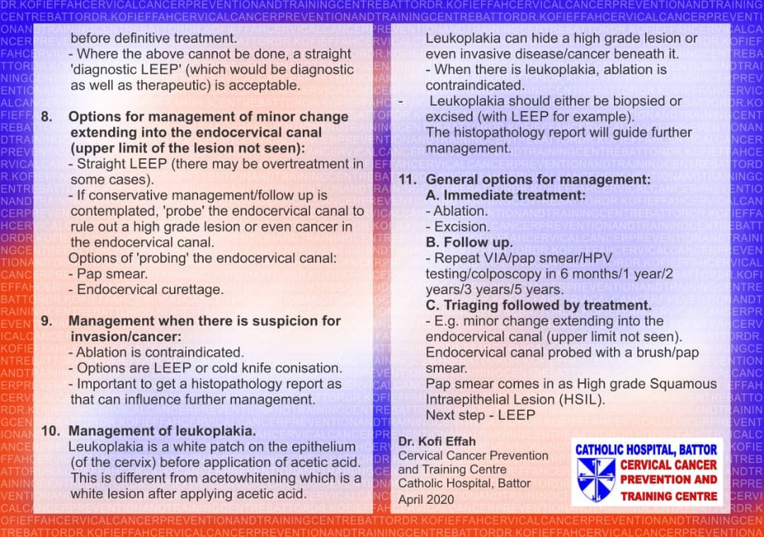 Here (as part of module 2), we highlight the principles in management of cervical precancer.
